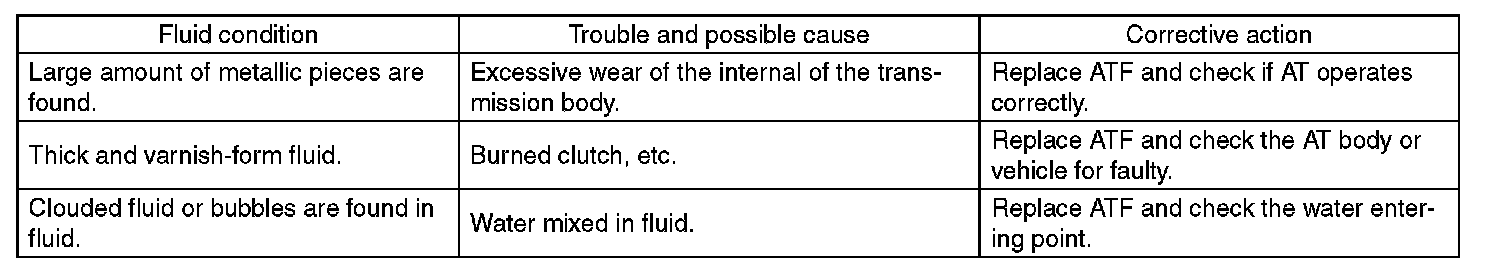 When replacing ATF, check the inside condition of transmission body by inspecting the drained ATF.
