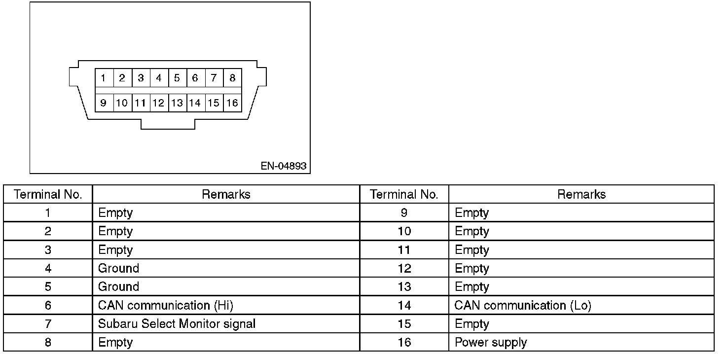 CAUTION: Do not connect any scan tools other than Subaru Select Monitor or general scan tool because the circuit for Subaru Select Monitor may be damaged.