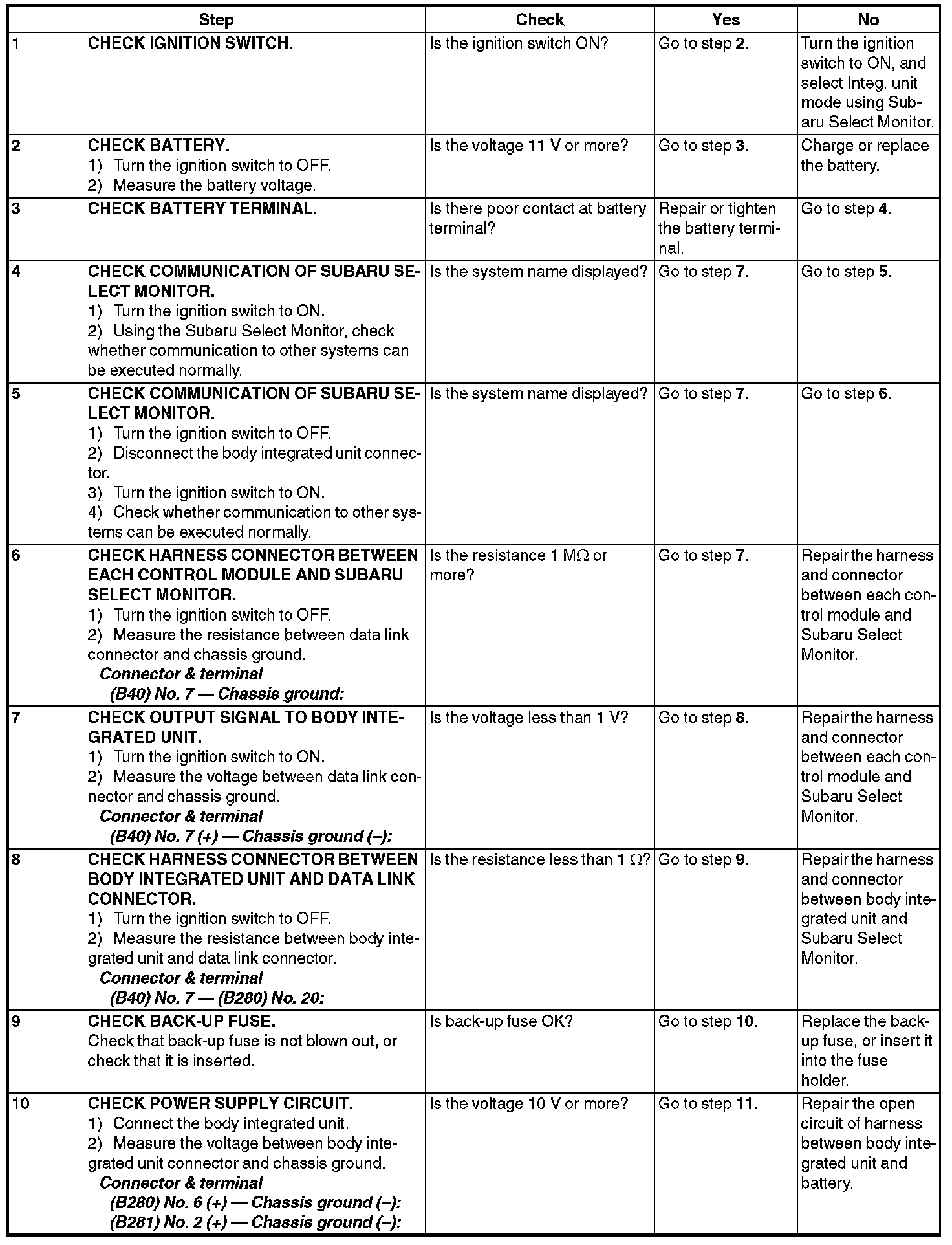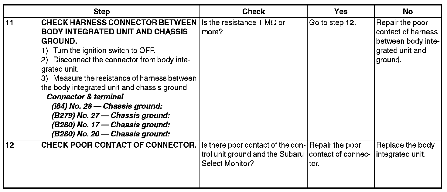 CAUTION: For model with immobilizer, immobilizer registration work is necessary when the body integrated unit replaced. For details, refer to the "PC application help for Subaru Select Monitor".