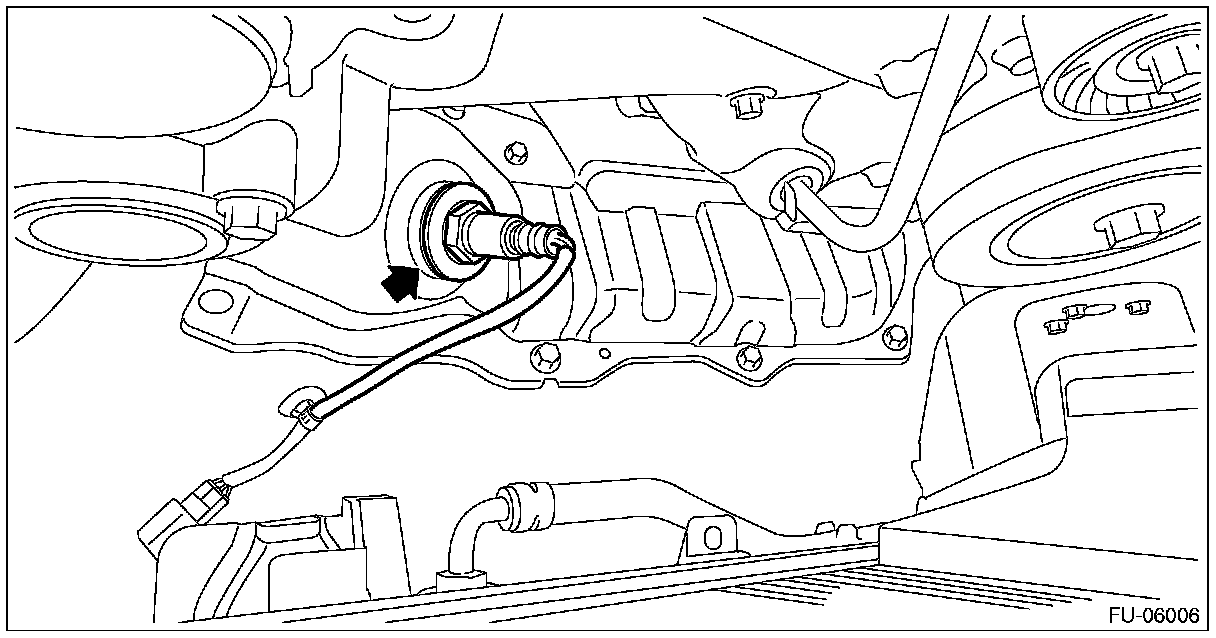 7. Apply spray-type lubricant to the threaded portion of front oxygen (A/F) sensor, and leave it for one minute or more.