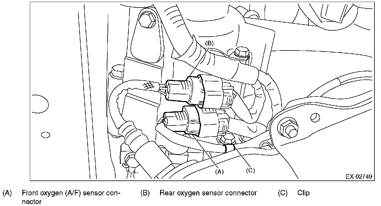 CAUTION: When removing the rear oxygen sensor, wait until exhaust pipe cools, otherwise it will damage the exhaust pipe.