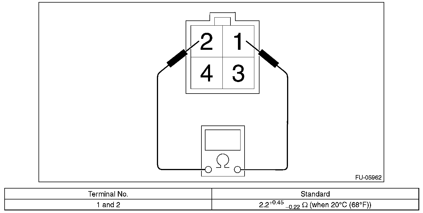 Measure the resistance between front oxygen (A/F) sensor terminals.
