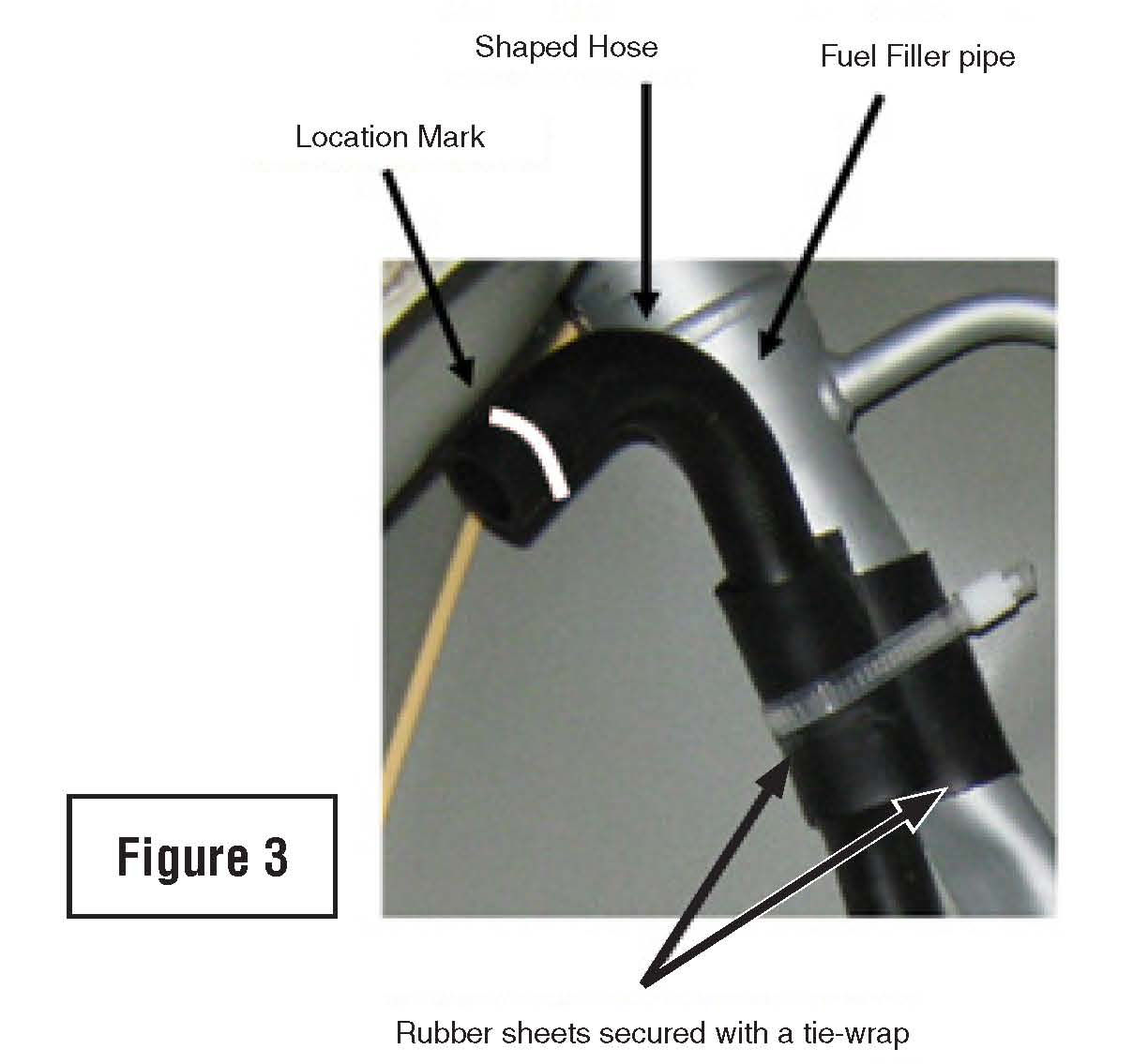 ^ Wrap the connection (and the filler pipe) with a rubber sheet and secure it with a tie wrap as shown in Figure 3.