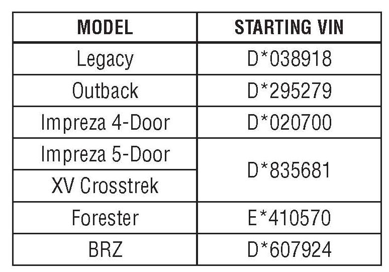 These VINs are for reference only. There may be a small number of vehicles after the starting VINs listed above which do not have the countermeasure due to production sequence changes.