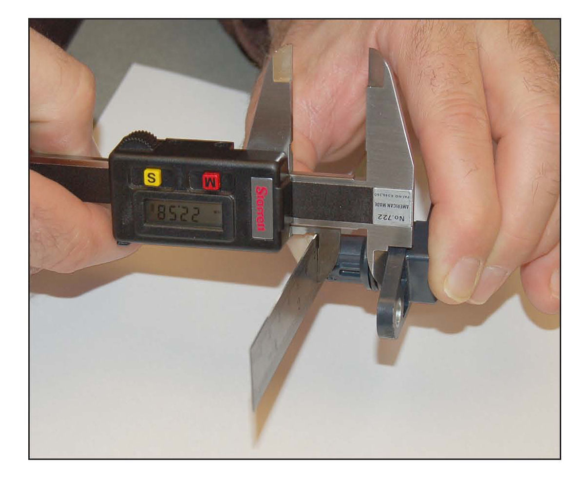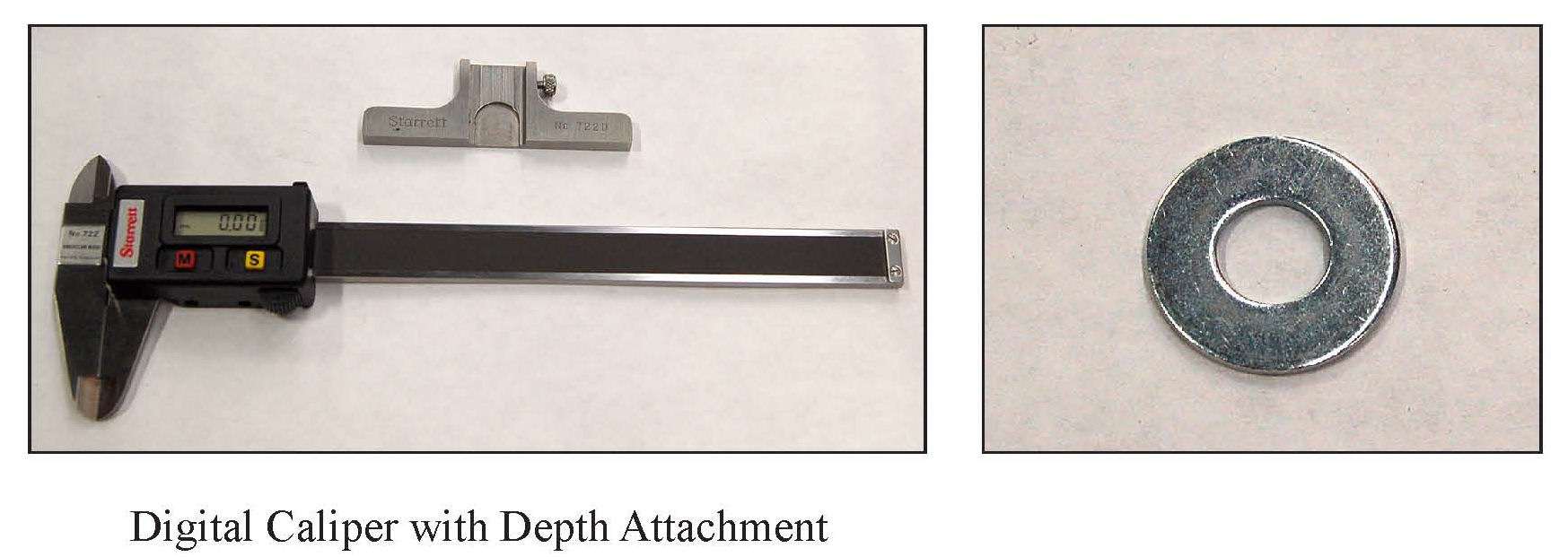 ^ If you do not have a depth attachment or a 1" Depth Micrometer, use a flat washer, (outside diameter 25.5mm, inside diameter 11.1mm, 7.72mm thick) or equivalent. The purpose of the flat washer is to provide a surface for the caliper to rest on while making the sensor clearance measurements.