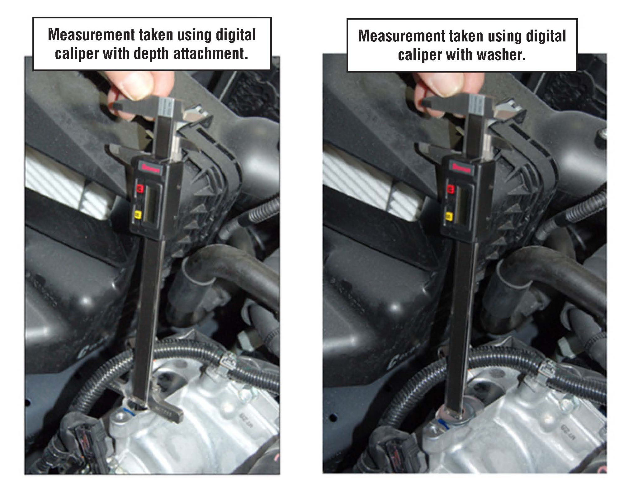 When using the flat washer, make sure the washer is fully seated on the machined surfaces of the timing cover or your measurements will not be accurate.