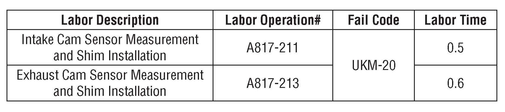 This Bulletin provides inspection and repair procedures for intake and exhaust camshaft position-related and/or engine misfire DTCs for the FA and FB engine-equipped models listed above. The camshaft position sensor (CPS) clearance may be out of specification causing these condition(s) and one or more of the DTCs listed above to set. In addition to a Check Engine light coming on, there may or may not be customer concerns of rough idle, extended cranking or no start.