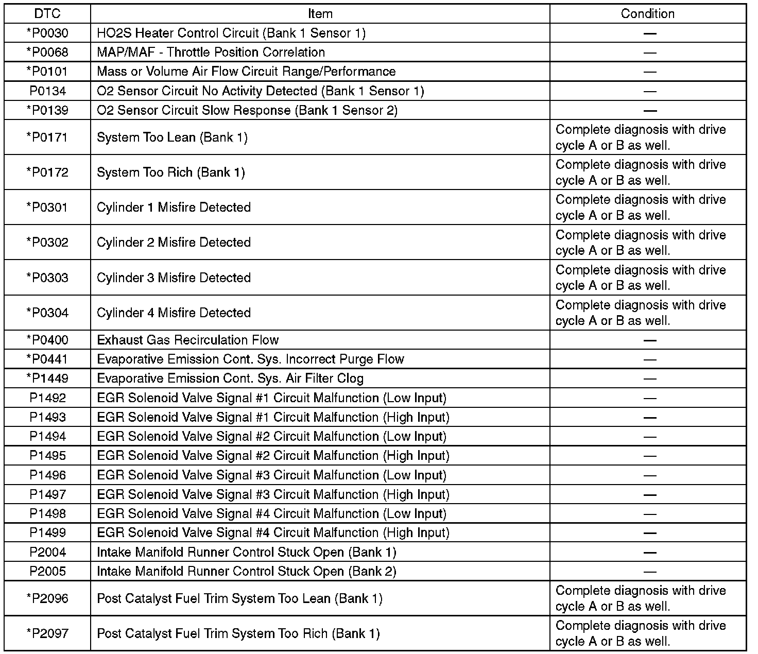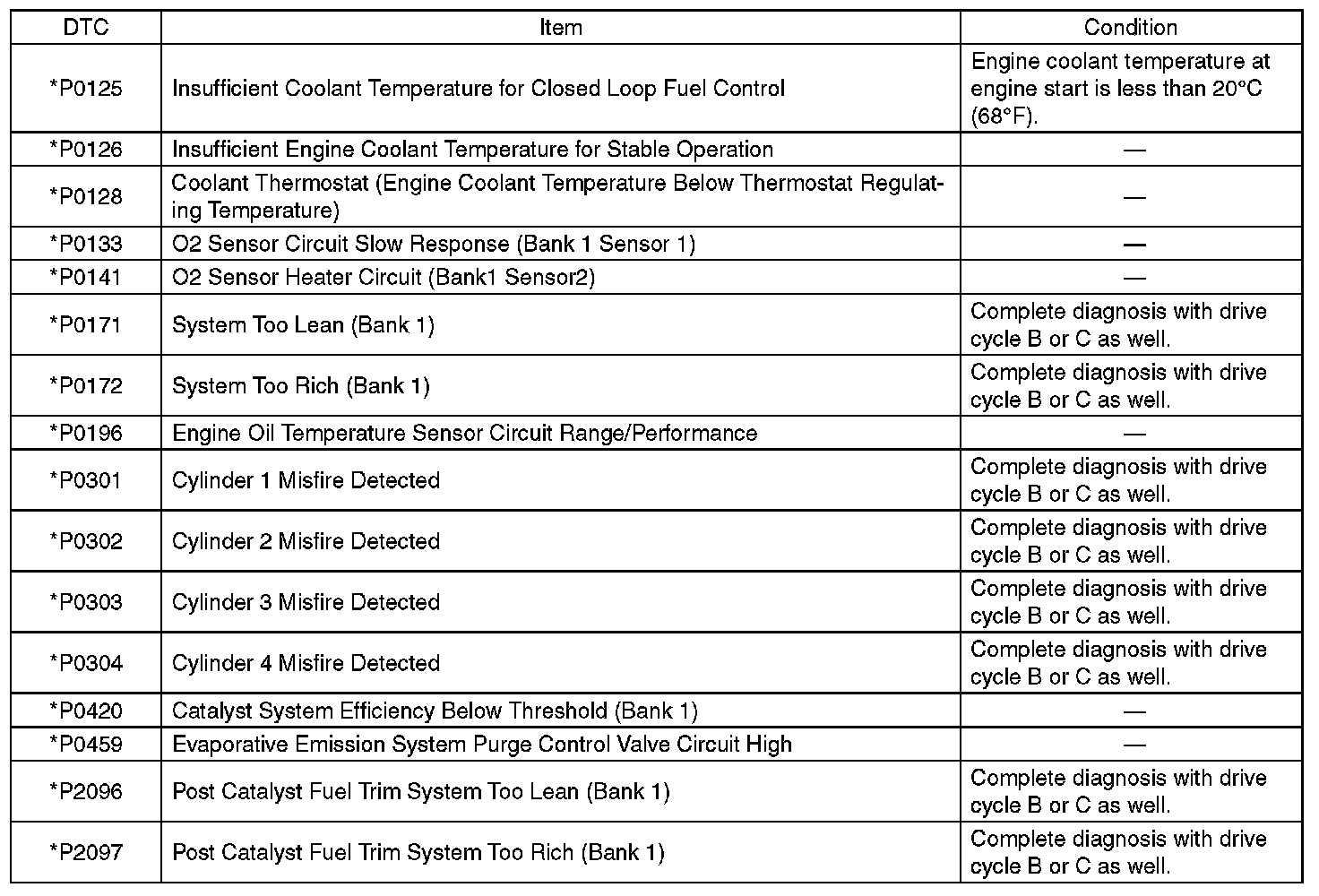 - Perform the drive cycle twice if the DTC in the list is marked with *. After completing the first drive cycle, stop the engine and perform second diagnosis in same condition.