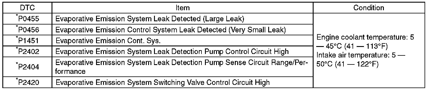 | Engine coolant temperature - Intake air temperature | ≤ 5 °C (9 °F)