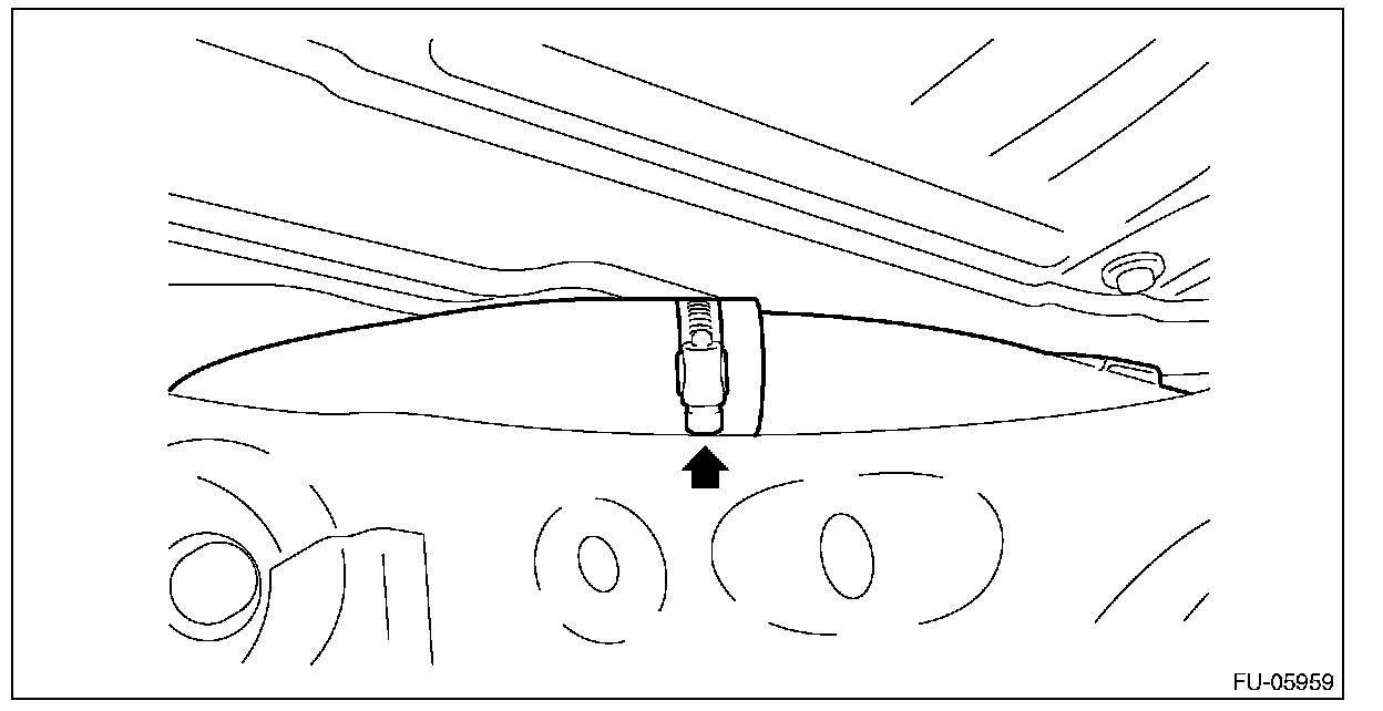 4. Drain the fuel from the fuel filler pipe through the filler opening using the gasoline proof pump and the gasoline proof hose (dia. 10 or less).