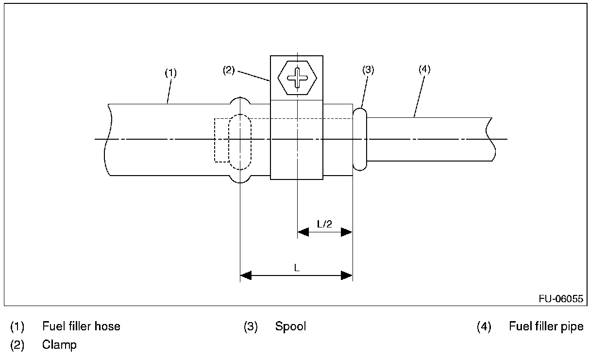 NOTE: Correctly insert the fuel filler hose to the spool, and then install the clamp as shown.