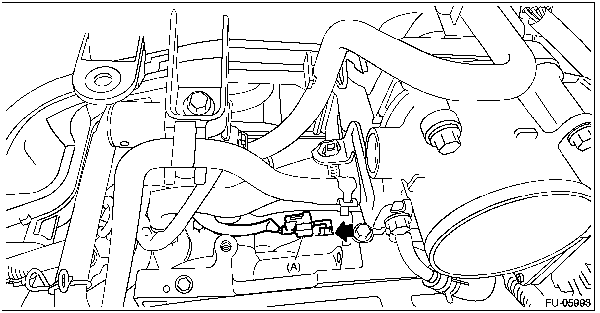 3. Disconnect the connector (A) from the crankshaft position sensor, and remove the crankshaft position sensor from the cylinder block.