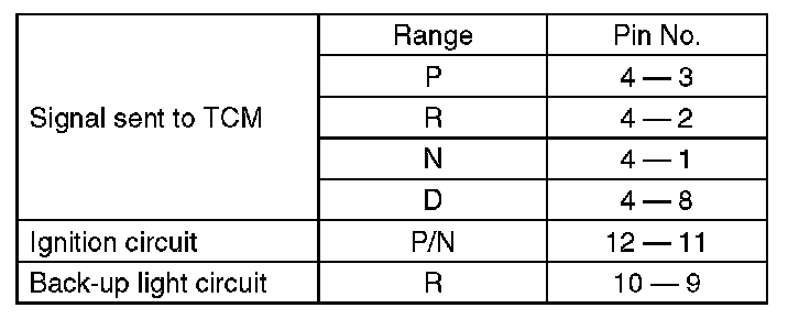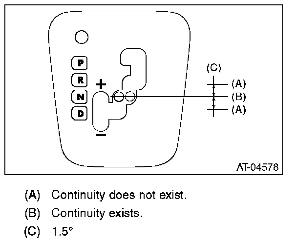 3) Check that there is continuity at equal points when the select lever is moved 1.5° in both directions from the "N" range.