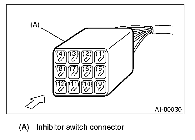 2) Check continuity in inhibitor switch circuits with the select lever moved to each position.