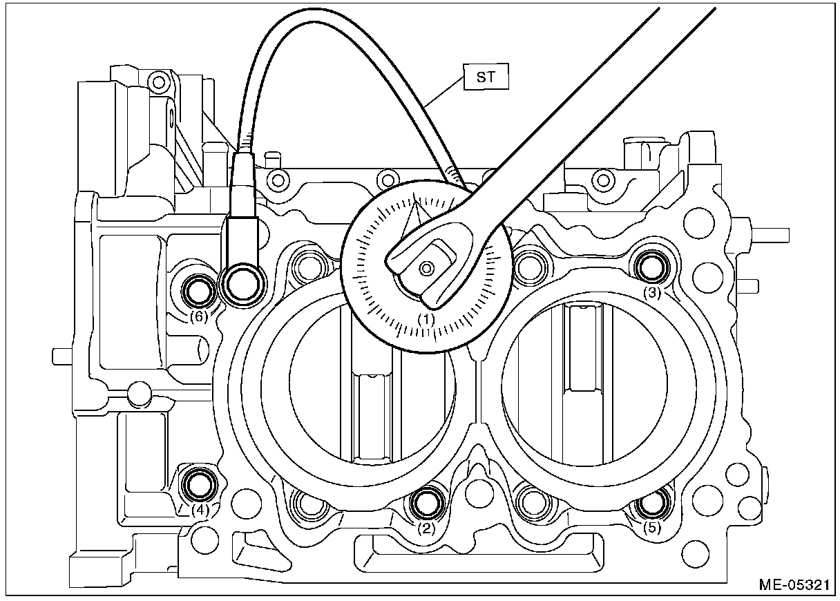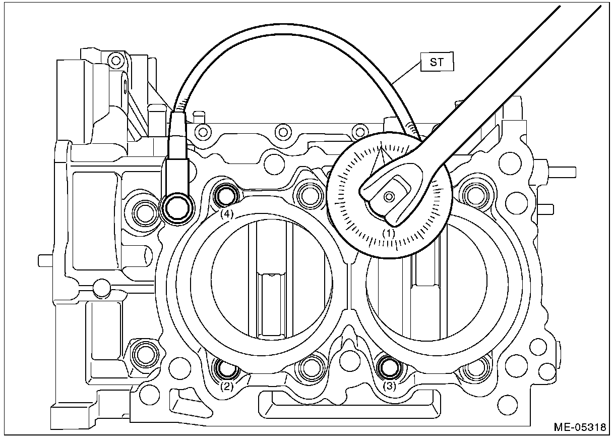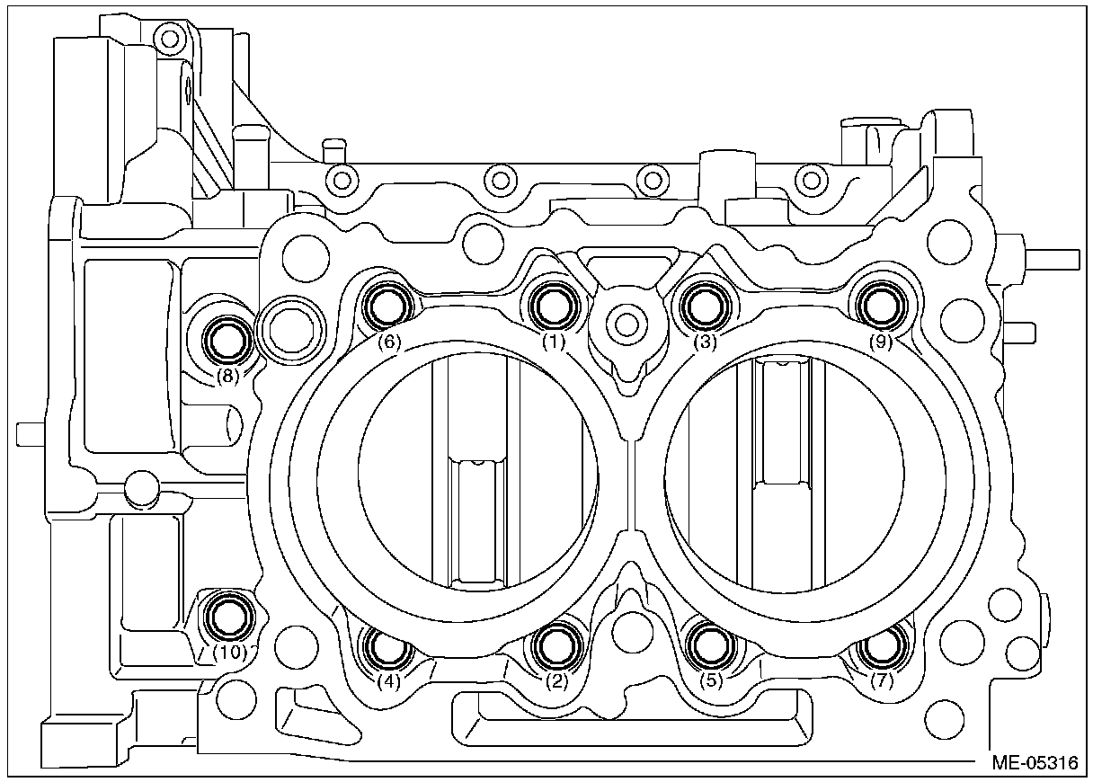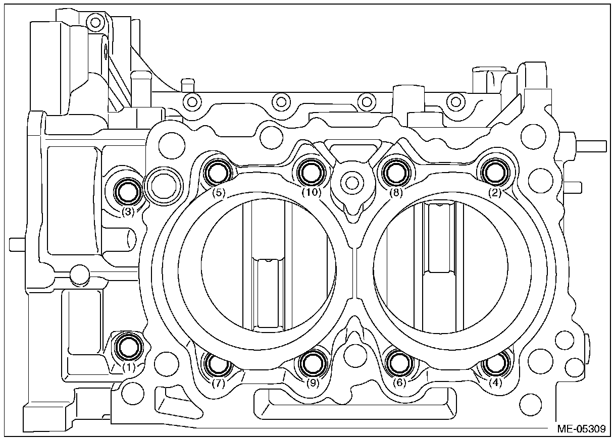 Cylinder block boltsTighten all 35 Nm (3.6 kgf-m, 25.8 ft-lb)