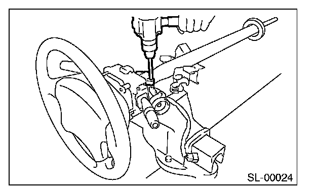 3. Secure the steering column in a vise. Remove the bolt with a drill.