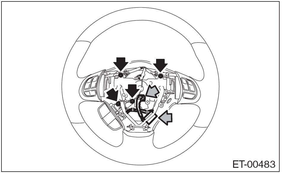 8. Remove the screws and remove the steering switch.