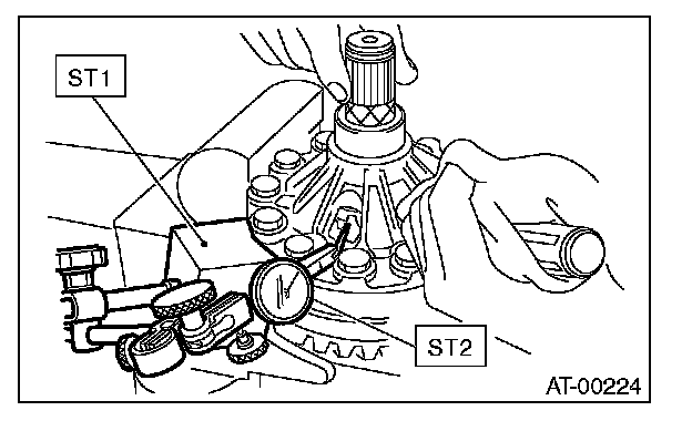 5) Rotate the drive pinion a few times using ST1 and ST2.