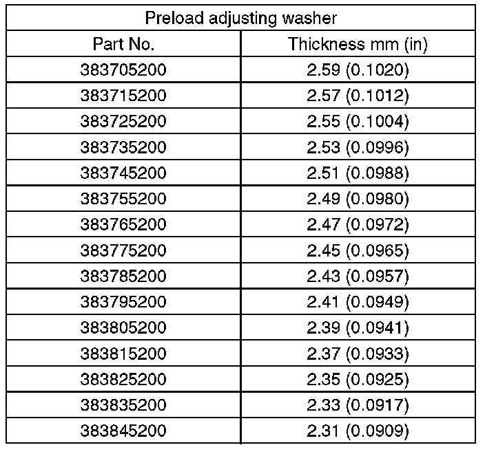 If the total preload is not within specification, adjust the thickness of side retainer shims, increasing/reducing both shims by an even amount at a time.