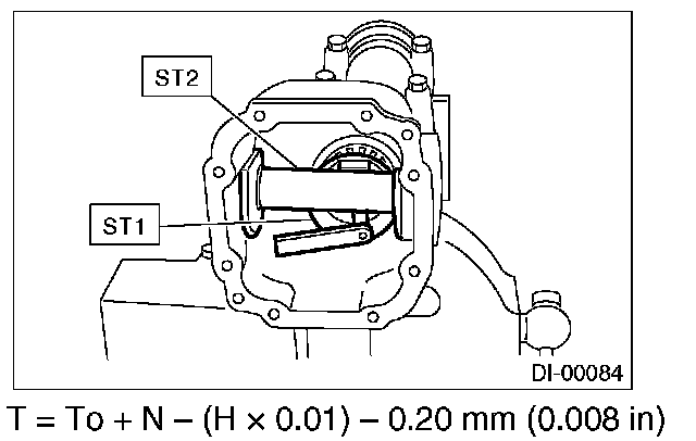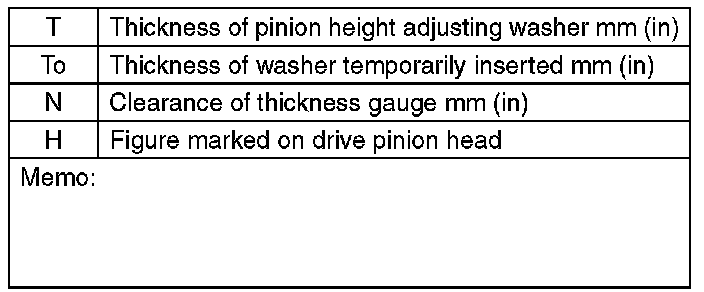 (3) Obtain the thickness of pinion height adjusting washer to be inserted from the following formula, and replace the temporarily installed washer with this one.
