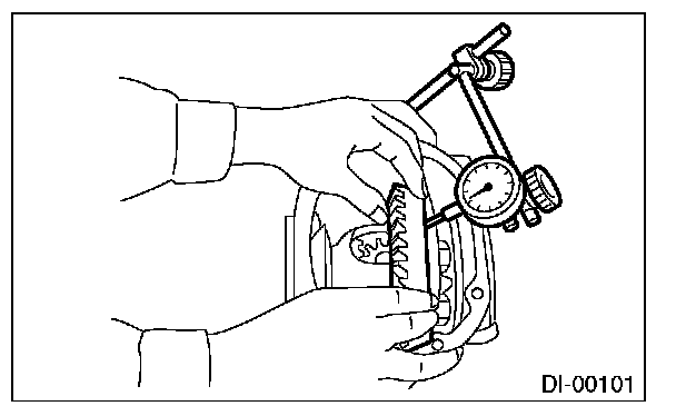 Using a dial gauge, check the backlash of hypoid driven gear.