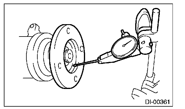 2) Set a dial gauge at a companion flange surface (mating surface of propeller shaft and companion flange), and then measure the companion flange runout.