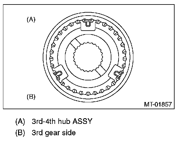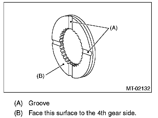 ^ If the gap between the end faces of the ring and the gear splined part is excessively small, check the clearance (A) while pressing the ring against the cone.