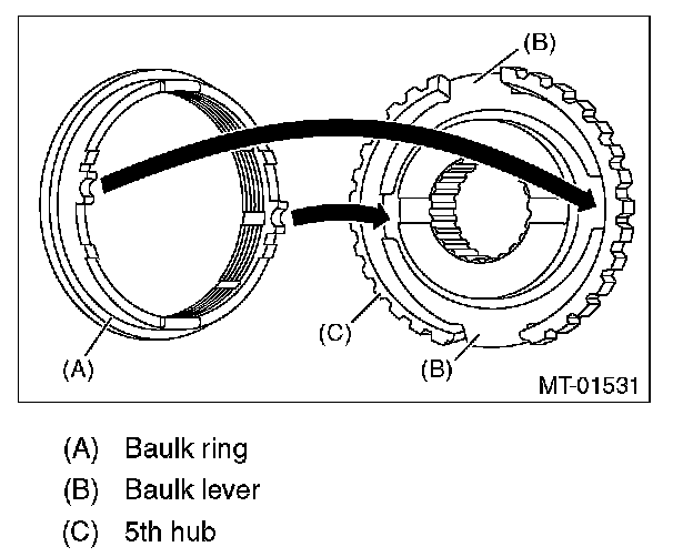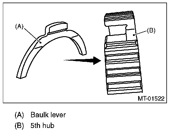 ^ Install the baulk lever so that the concave side faces toward the 5th hub.