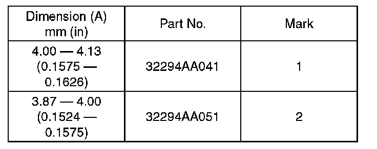 Using the ST, measure the protrusion amount (A) of ball bearing from transmission main case surface, and select a suitable plate in the following table.