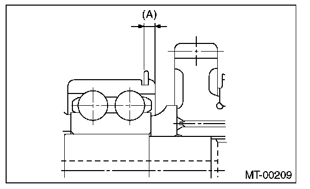 Before measuring, tap the end of main shaft with a plastic hammer lightly in order to make the clearance zero between the main case surface and moving flange of bearing.