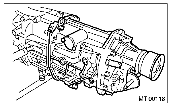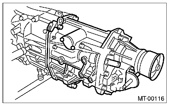 18) Install the transfer case along with the extension case assembly to the transmission case.