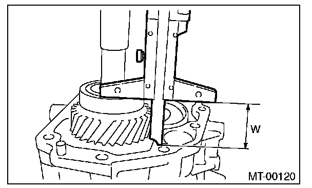 4) Measure the height "W" between transfer case and taper roller bearing on the transfer driven gear.