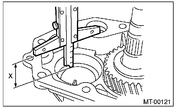 5) Measure depth "X" on bearing insertion part of the extension case.