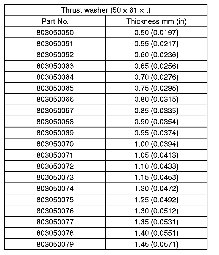 11) Calculate the thrust washer thickness "U" mm (in) using the following calculation.