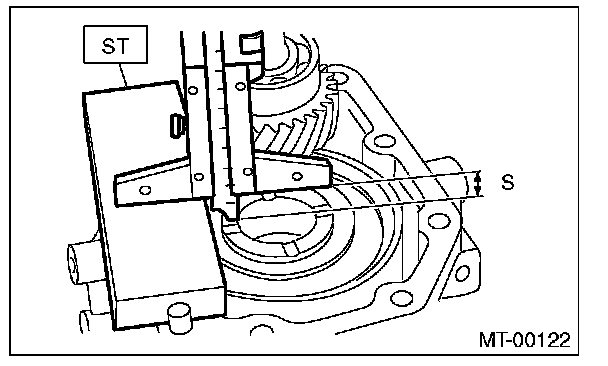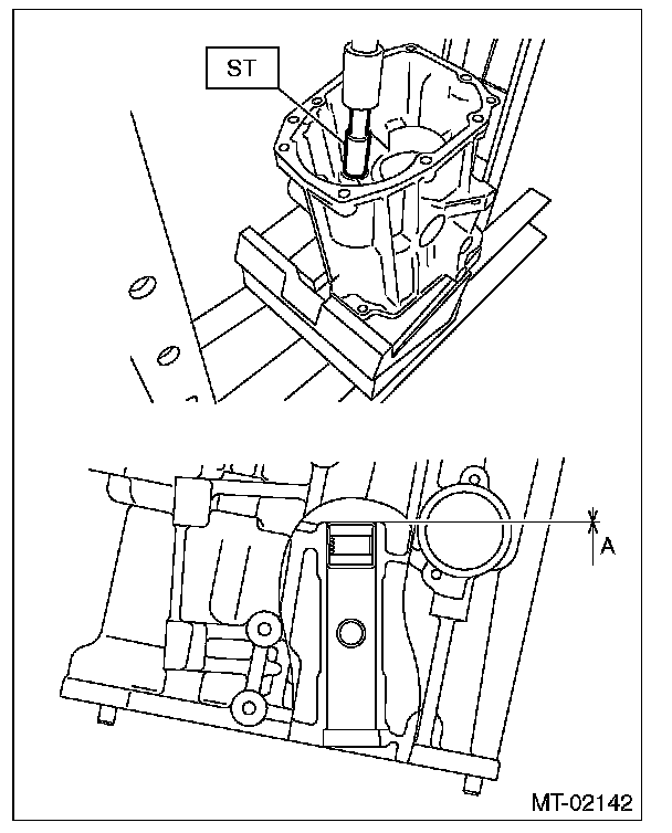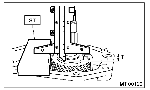 10) Measure the height "T" between the extension case and transfer drive gear.