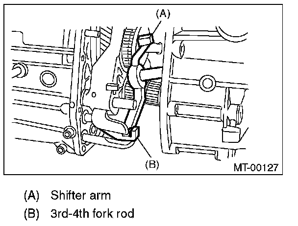 17) Hang the shifter arm on 3rd-4th fork rod.