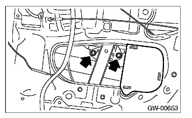 4. Operate the power window switch to move the glass, and remove the bolts.