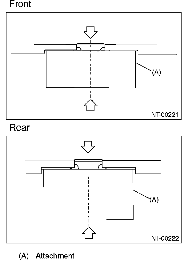 - Model without side sill spoiler For the models without side sill spoiler, align the center of attachment with the center of vehicle cutout portions.