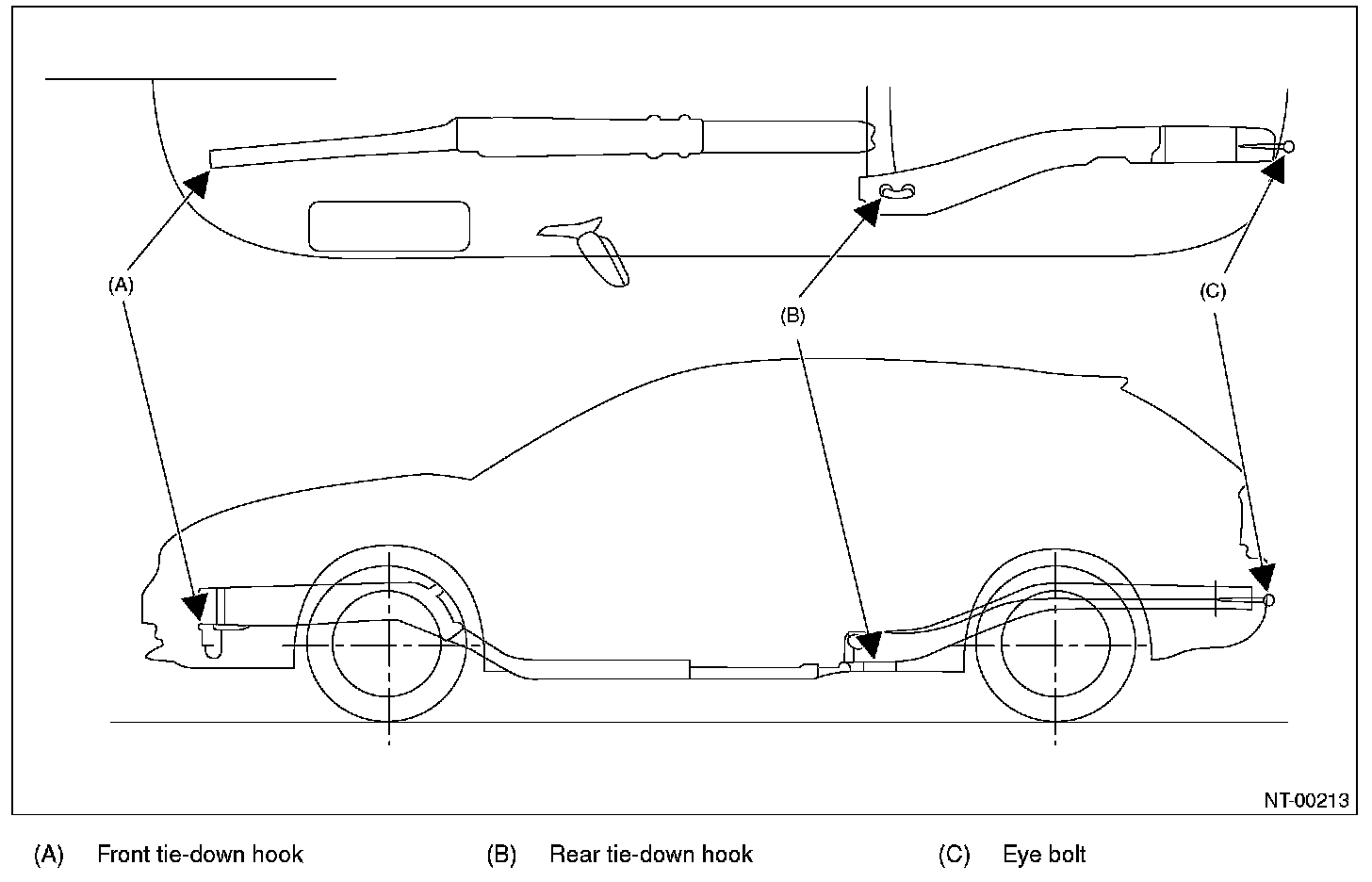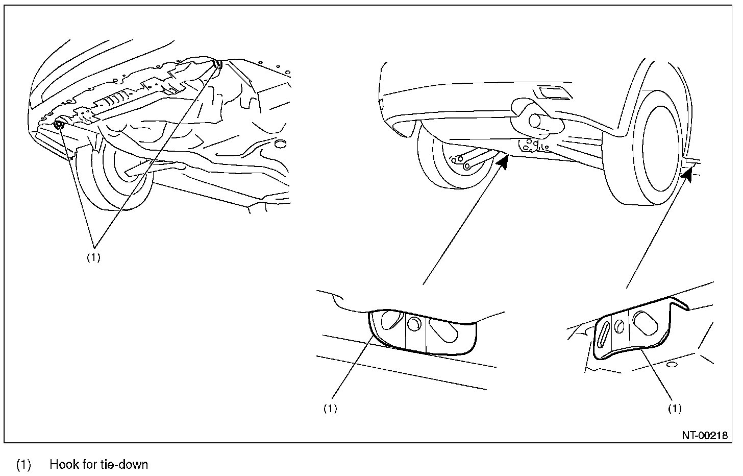 The tie-down hooks are used when transporting vehicles and when using the chassis dynamo. Attach tiedown only to the specified locations on the vehicle.