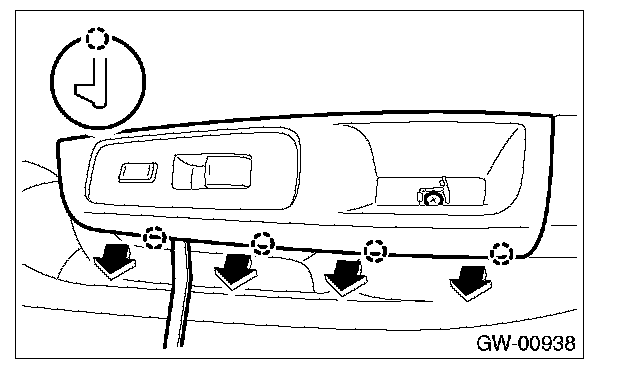 3. Remove the screws to remove the power window sub-switch assembly.