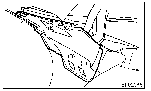 NOTE: Install while paying attention to make a uniform clearance around the front fender panel. For the dimension of clearance, refer to "SPECIFICATION" in "General Description".