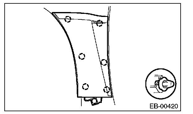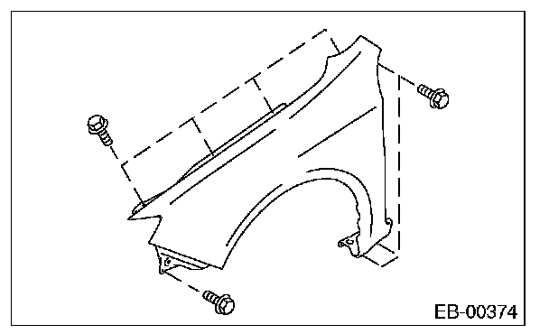 - After the installation of front fender panel, be sure to perform headlight beam adjustment.