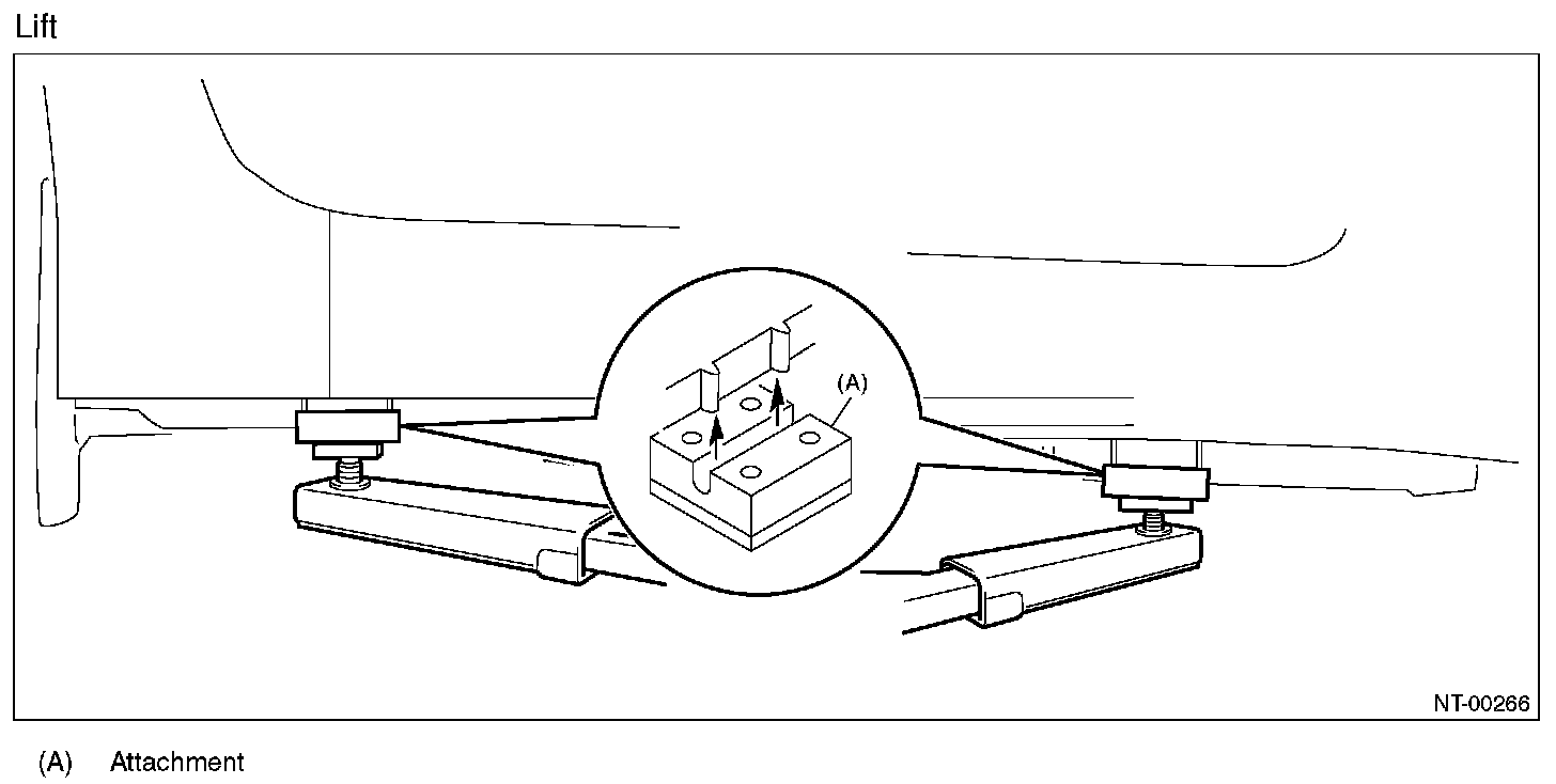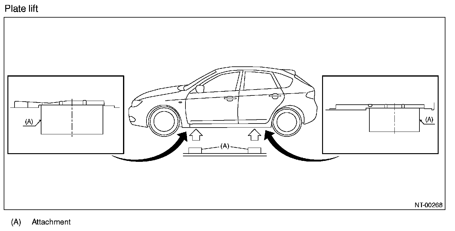 - When using a plate lift, use a rubber attachment. Place the attachment to the specified position of the vehicle, by adjusting front/rear and left/right sides accordingly.