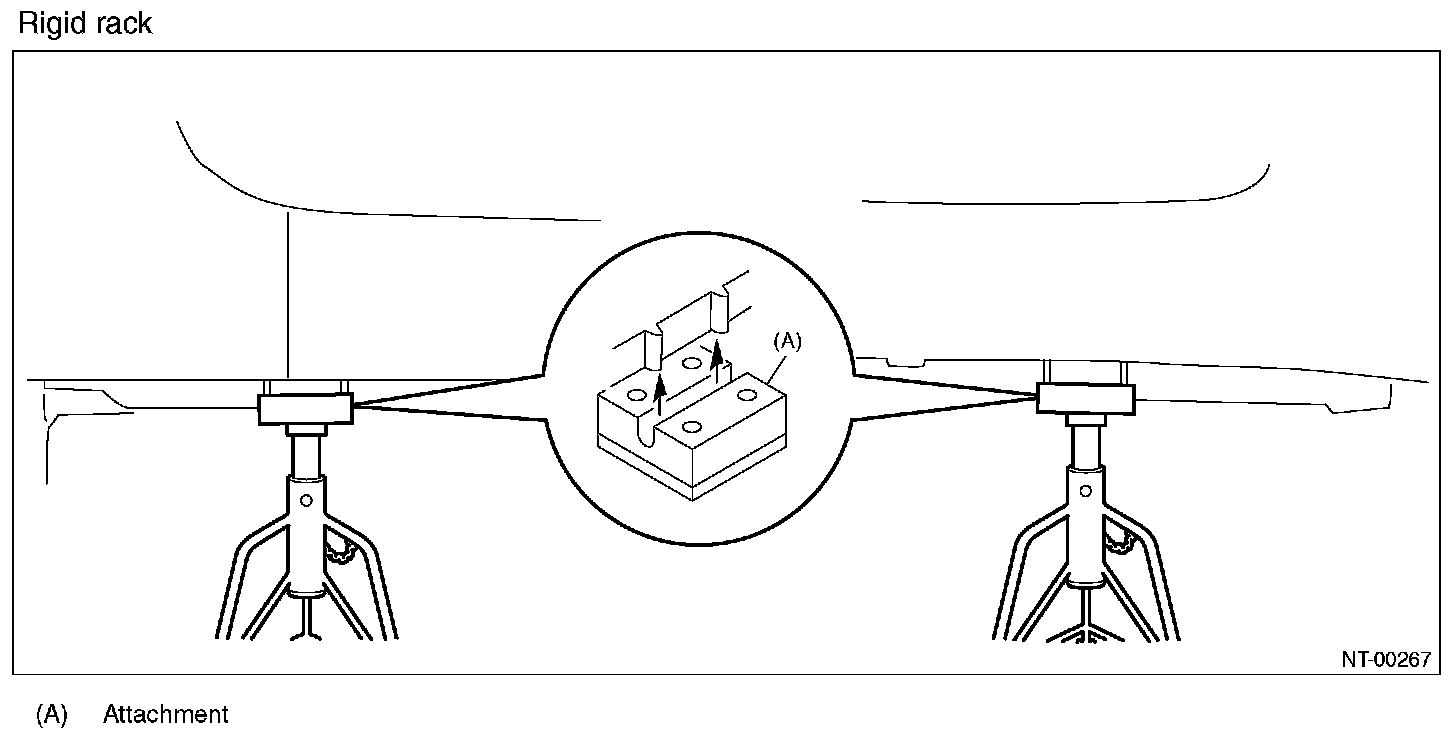 When using a lift or shop jack to raise a vehicle or using rigid rack to support a vehicle, always follow instructions concerning jack-up points and weight limits to prevent the vehicle from falling, which could result in injury. Be especially careful that the vehicle is balanced before raising it. Be sure to set the wheel stoppers when jacking-up only the front or rear side of the vehicle.