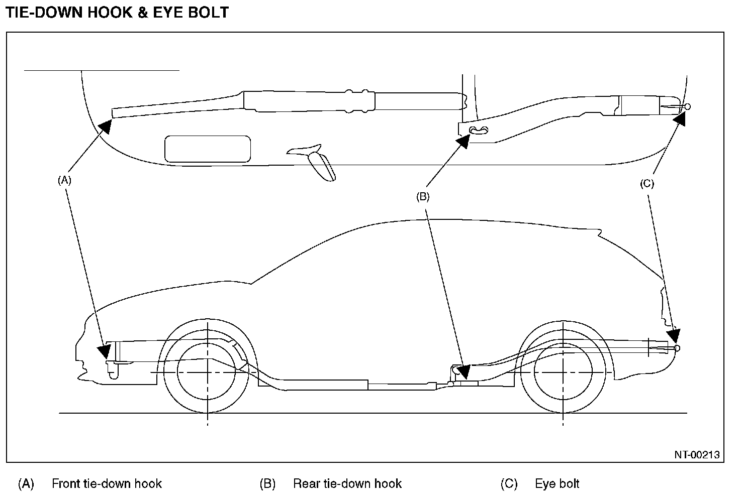 The tie-down hooks are used when transporting vehicles and when using the chassis dynamo. Attach tiedown only to the specified locations on the vehicle.