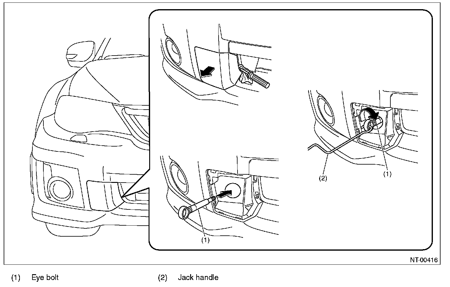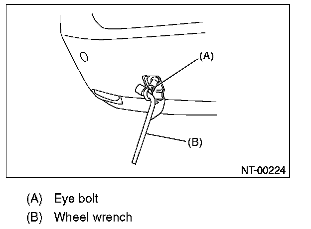 CAUTION: When tightening the eye bolt using a wheel wrench, be careful not to scratch the bumper.