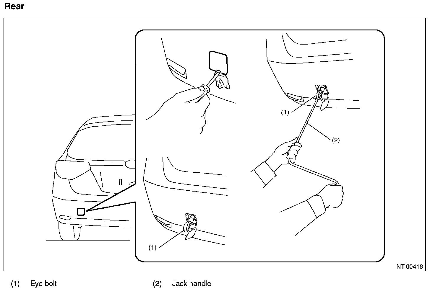 - Do not use the towing hook (eye bolt) except when towing.