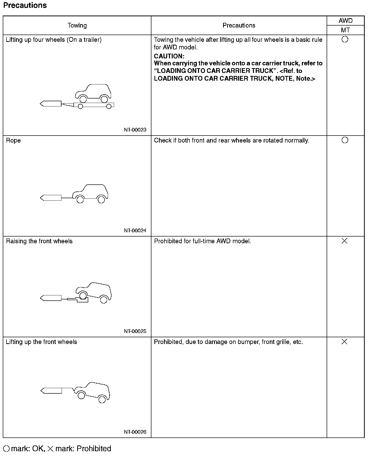 - In case of the malfunction of internal transmission or drive system, lift up four wheels (on a trailer) for towing.