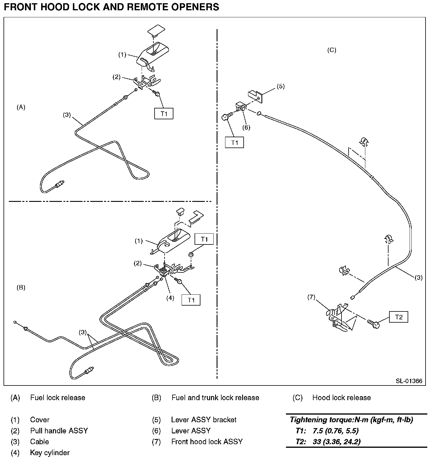 FRONT HOOD LOCK AND REMOTE OPENERS