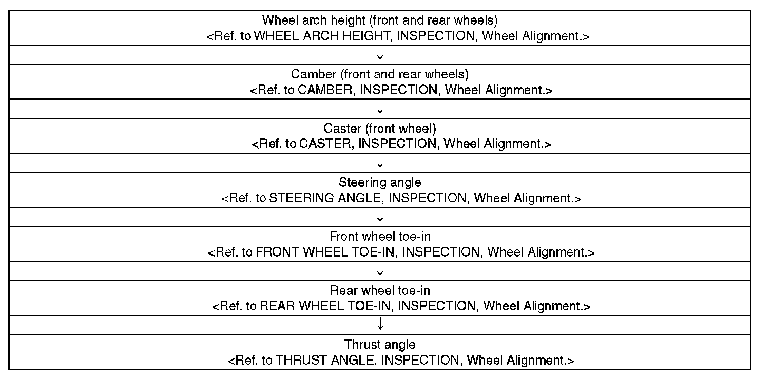 Check, adjust and measure the wheel alignment in accordance with the procedures indicated in the figure.